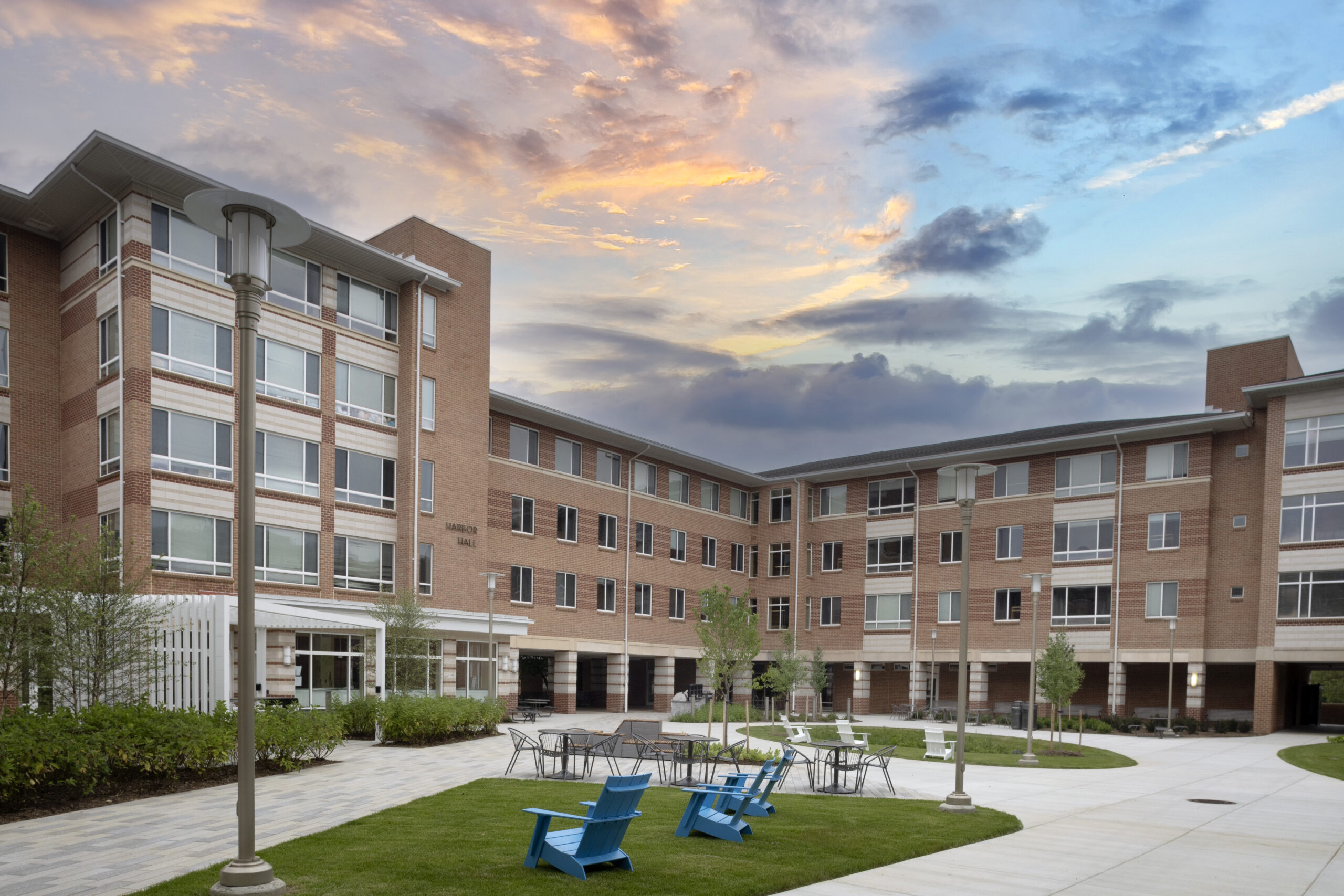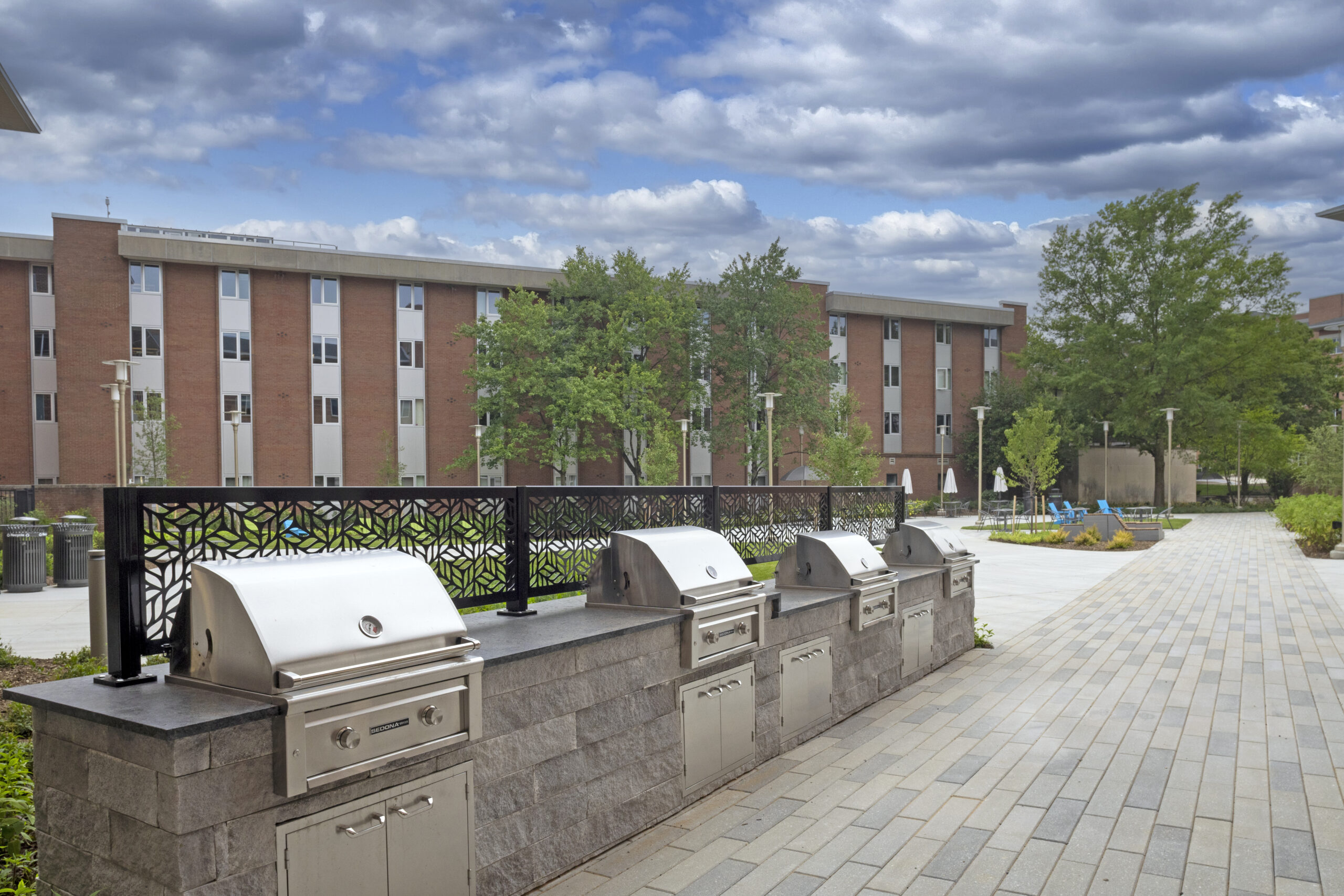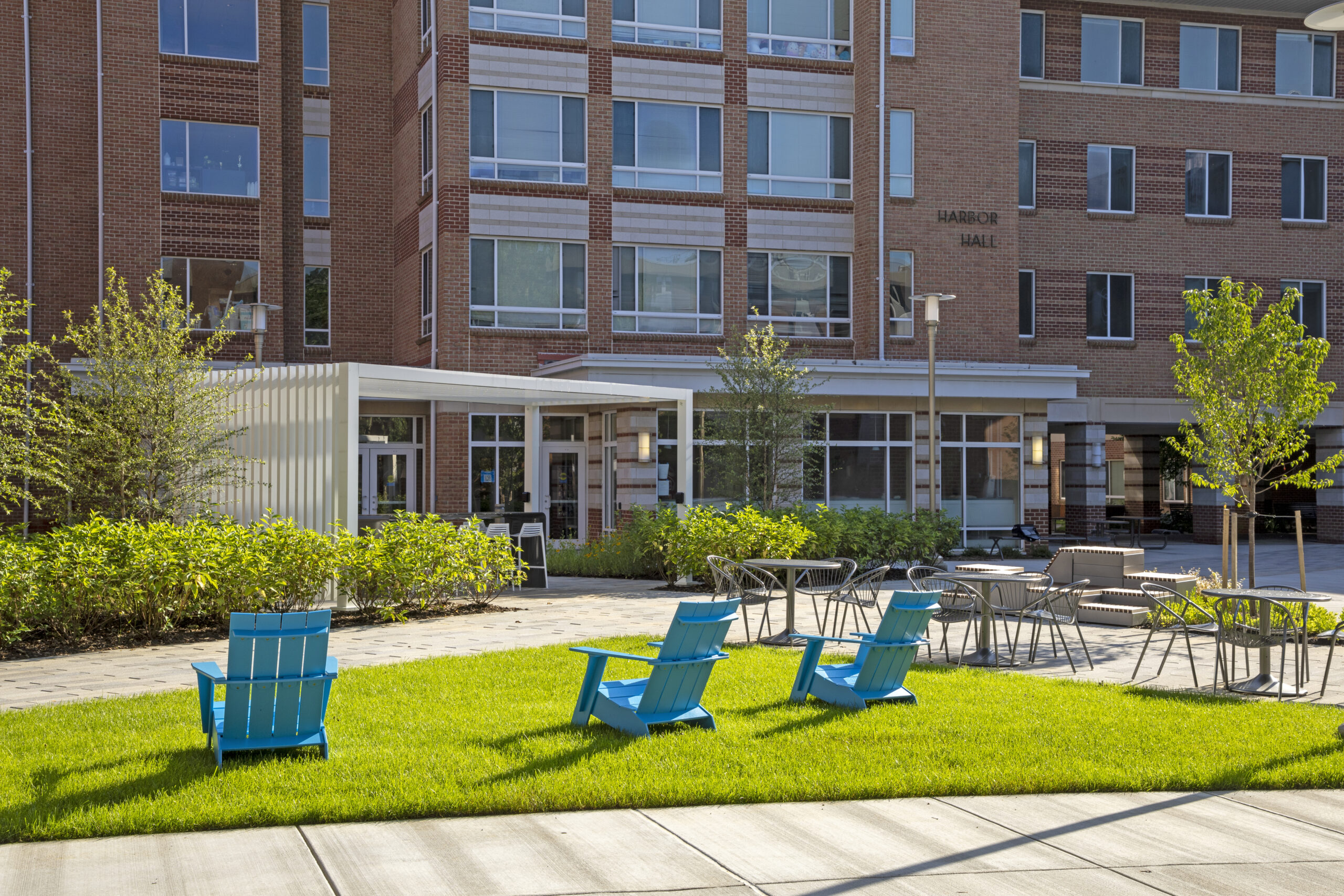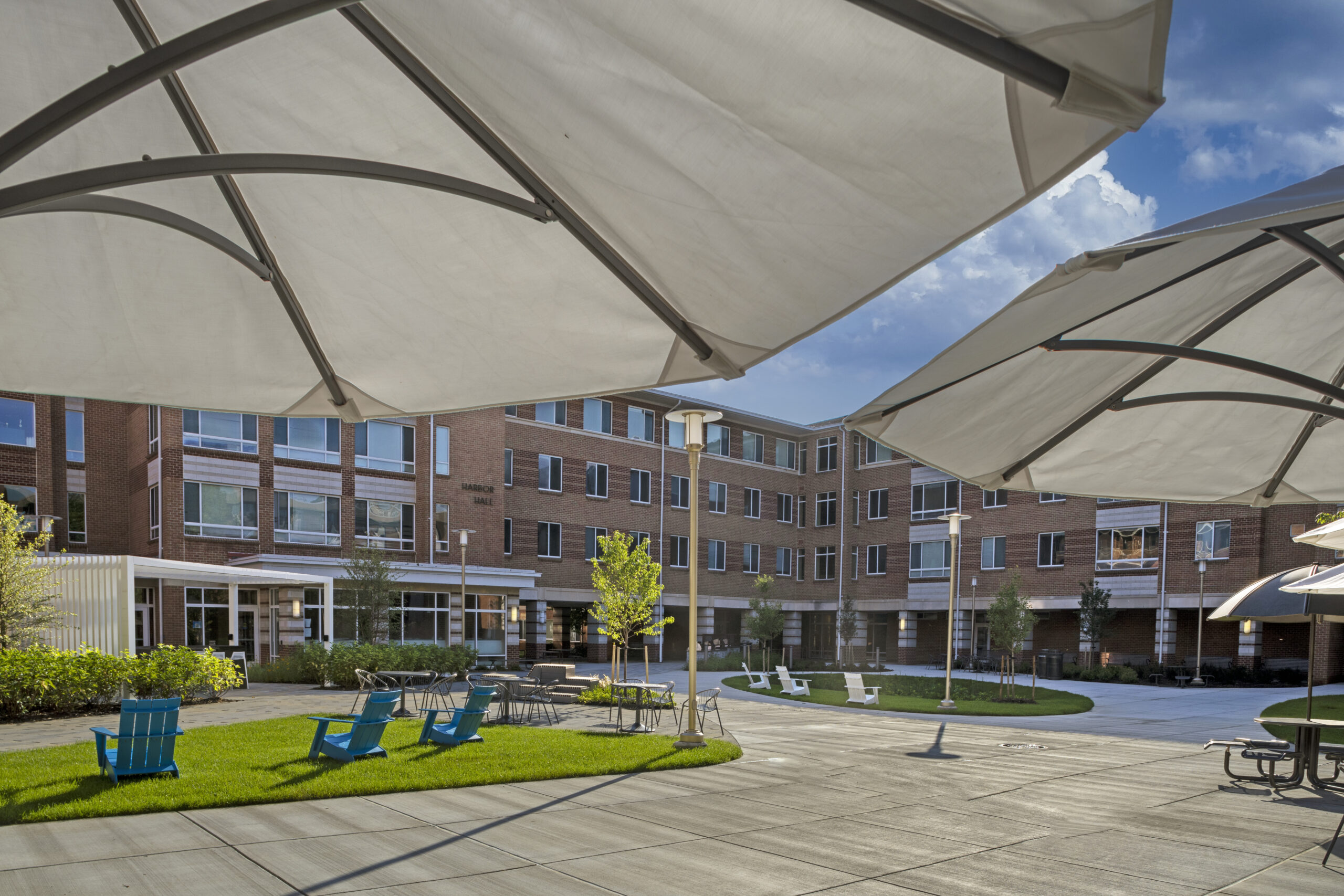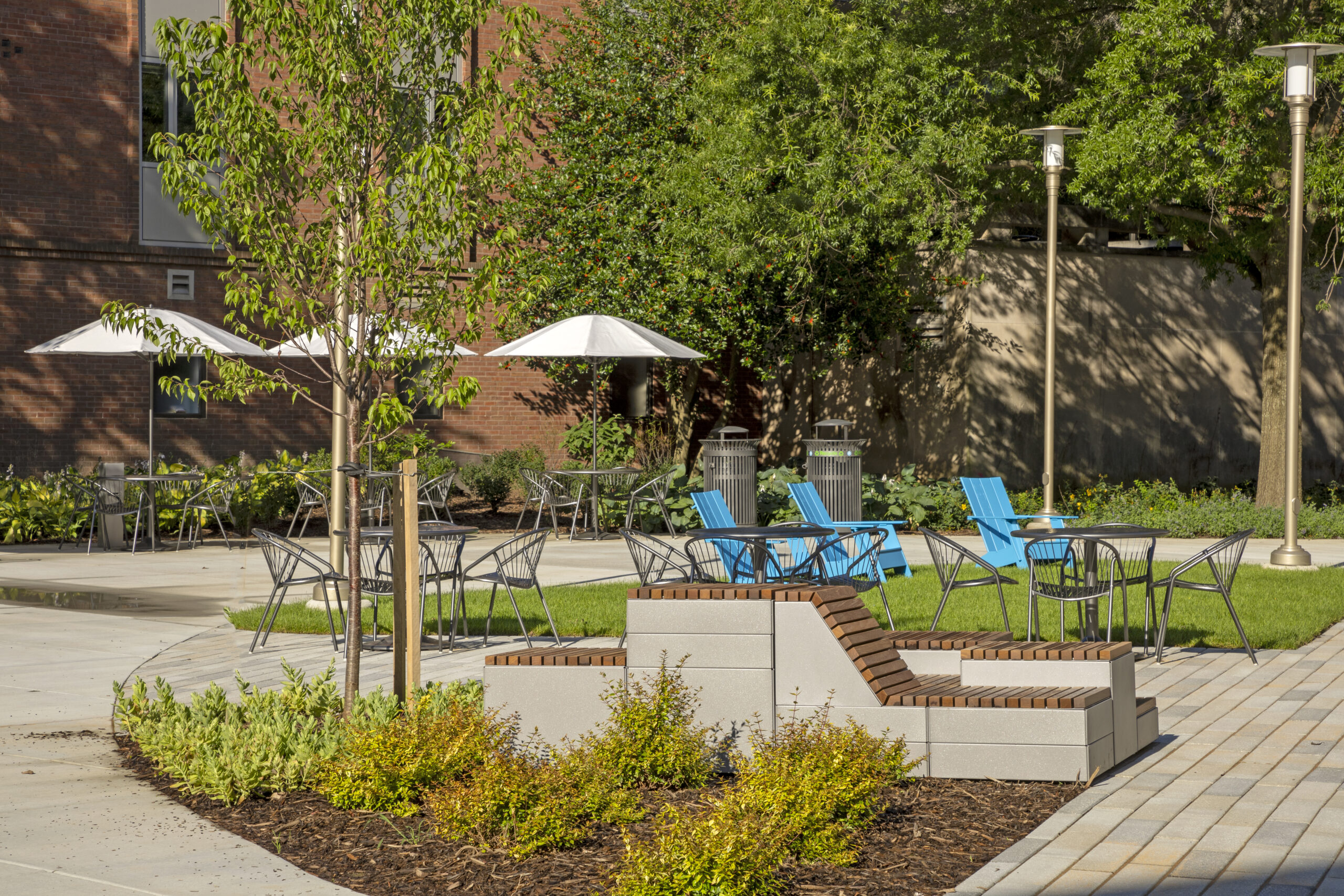 Project Description: As part of UMBC’s commitment to enhancing campus life, the university transformed approximately 48,000 square feet (1.1 acres) of the Harbor Hall Courtyard into a vibrant, multi-use gathering space for students, families, staff, and the broader community. The project included demolishing outdated hardscapes, furnishings, and landscaping, then installing extensive new concrete and paver walkways, landscaped areas, two bioretention basins with storm piping, and upgraded site features. Amenities such as seating, a pergola, power stations, an emergency phone, and a grilling station were added to support both everyday use and student life activities. Located between three occupied buildings, the project required careful planning and execution to minimize disruption to campus operations and maintain the safety of students and the community throughout construction.